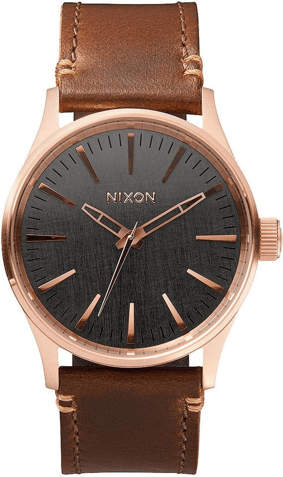 Nixon The Sentry 38 Leather Rose Gold/Gunmetal/Brown